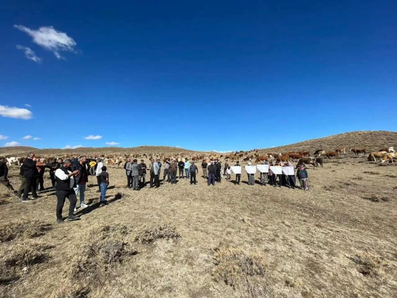 Bozkale köyü sakinleri, yıllardır hayvancılıkla geçimlerini sağladıklarını belirterek, mera alanlarının yok edilmesine tepki gösterdi. Ellerinde pankartlarla bir araya gelen vatandaşlar,