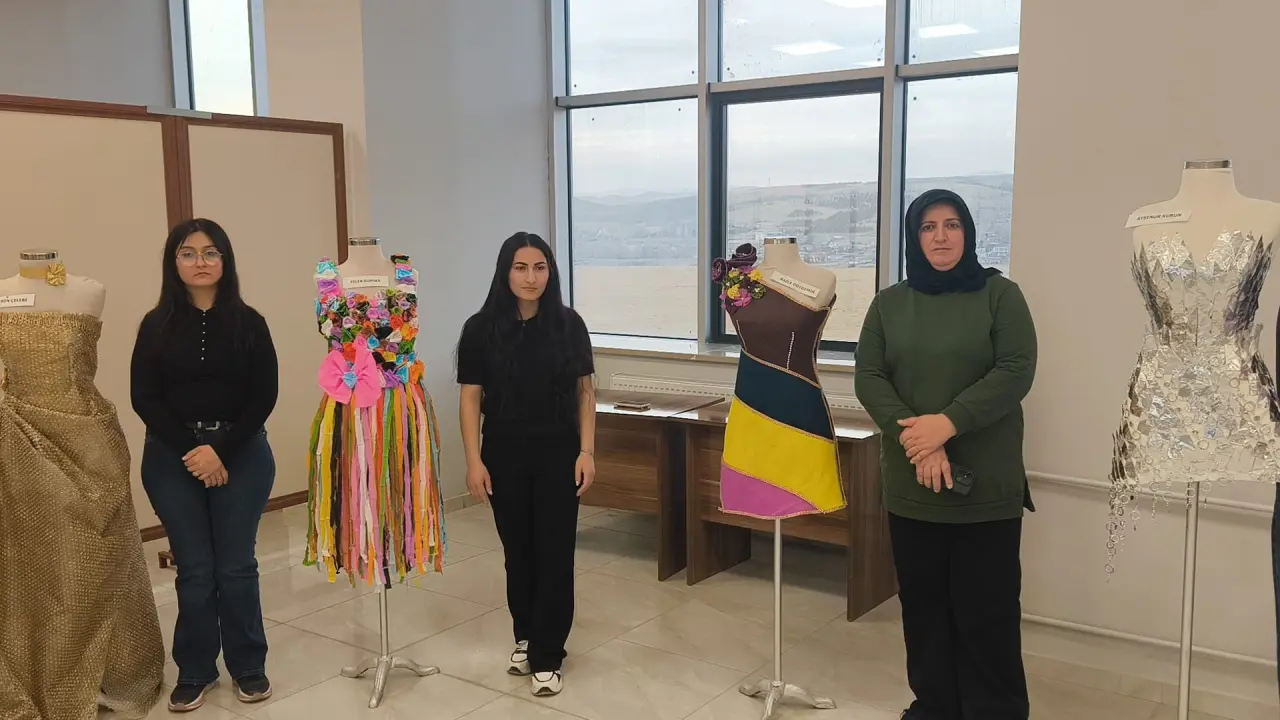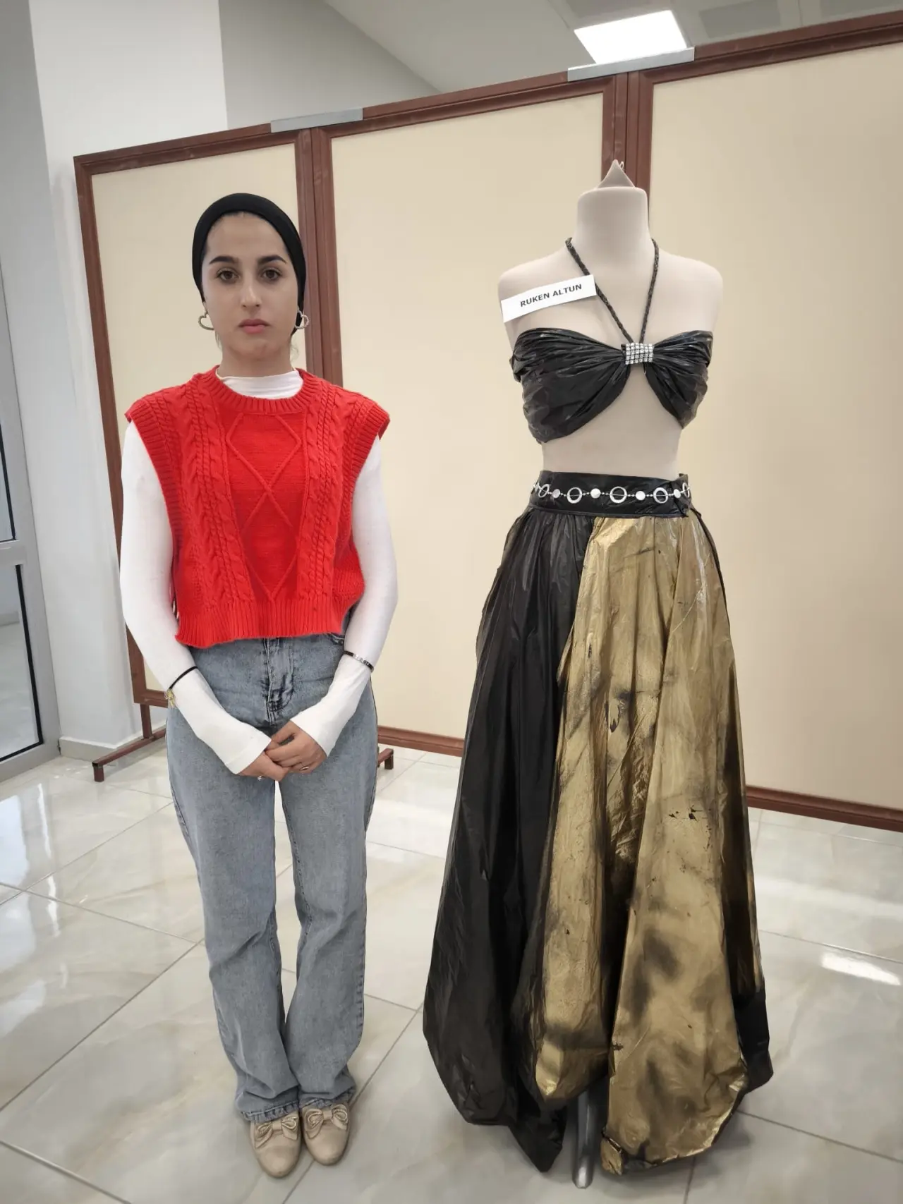 Sergide yer alan geri dönüşüm malzemelerinden tasarlanan giysi modelleri, büyük beğeni topladı. Plastik şişelerden metal parçalara, kağıt dokulardan tekstil atıklarına kadar birçok geri dönüşüm materyali yaratıcı bir şekilde kullanıldı. Tasarımlar, sürdürülebilir moda anlayışını sanatla bir araya getirdi. Öğrencilerin farklı tekniklerle hazırladığı deneysel giysiler, estetik duruşu ve çevre bilincine vurgu yapmasıyla dikkat çekti.