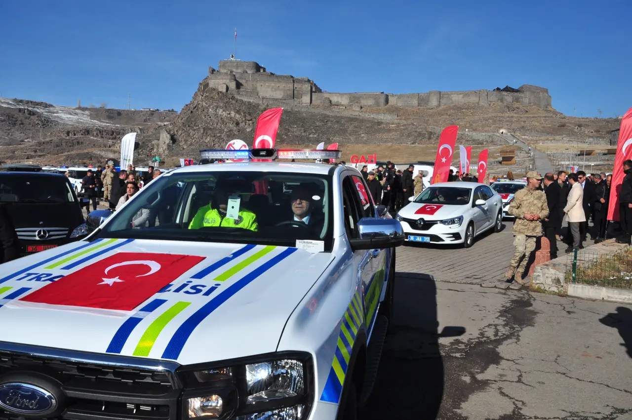 Kars’ta emniyet ve jandarma teşkilatlarının kullanımına sunulan 60 yeni araç, düzenlenen törenle hizmete alındı. Törene Kars Valisi Ziya Polat, il protokolü, bağışçılar ve vatandaşlar katıldı. Vali Polat, araçlardan birine binerek test sürüşü gerçekleştirdi.