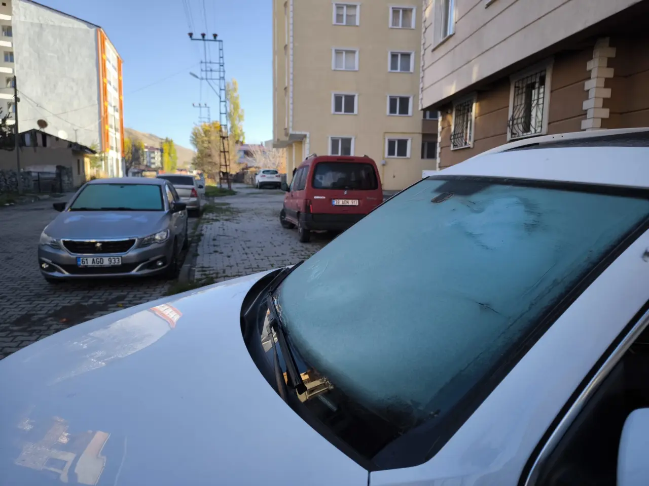“Kars’ta kış erken geldi. Soğuk havadan aracımı korumak için üzerine battaniye örttüm. Sabah kalktığımda camlar tamamen buz tutmuştu. Her yıl aynı manzarayı yaşıyoruz.”