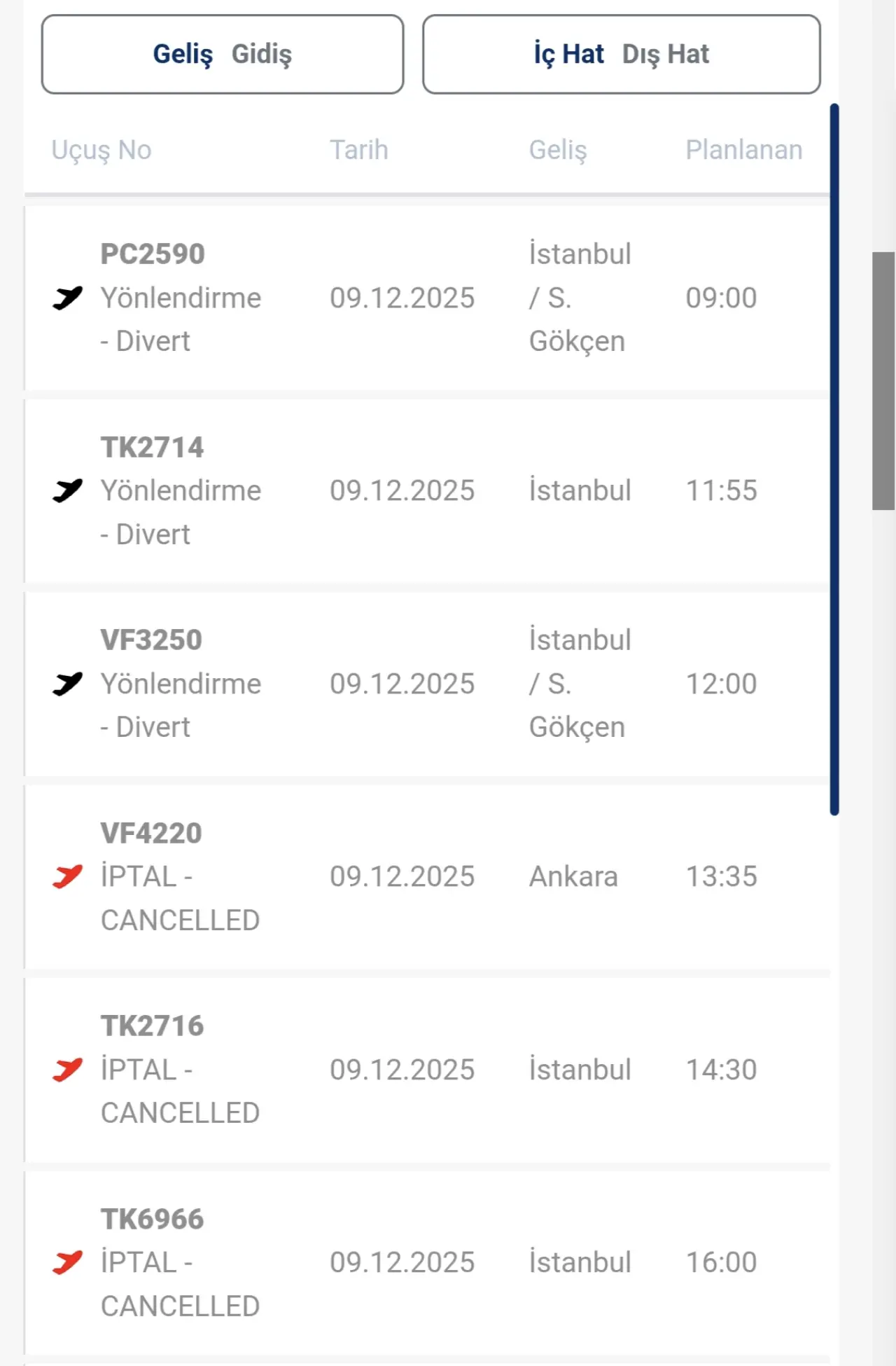 Havalimanına gelen yolcular, seferlerin iptali nedeniyle mağdur olduklarını belirterek özellikle son günlerde yaşanan aksaklıkların ulaşımı olumsuz etkilediğini ifade etti. Bazı seferler tamamen iptal edilirken, bazı uçakların ise çevre illere yönlendirme yapıldığı öğrenildi.