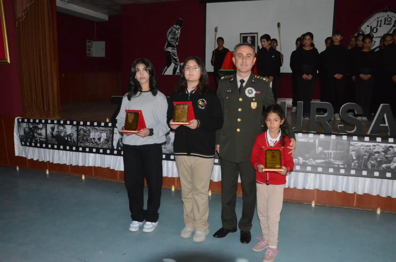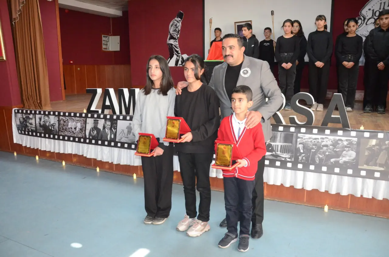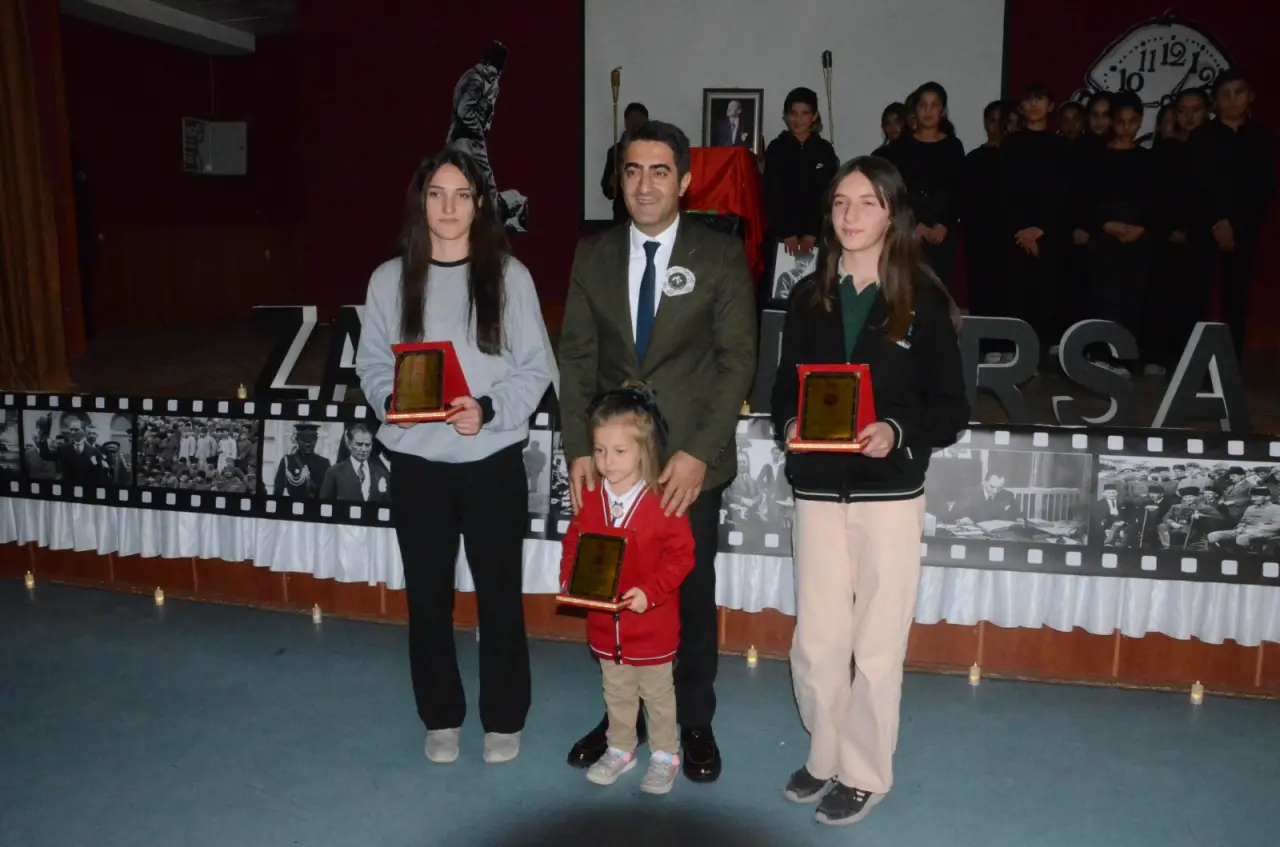 Program sonunda, okullar arasında düzenlenen resim, müzik ve şiir yarışmalarında dereceye giren öğrencilere plaketleri takdim edildi.