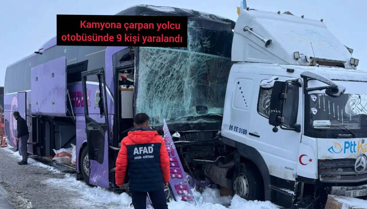 Bu sırada aynı istikamette seyir halinde bulunan ve M.Z.Ç.’nin kullandığı yolcu otobüsü, refüjde duran kamyona çarptı. Çarpmanın etkisiyle otobüste bulunan yolculardan 9 kişi yaralandı.