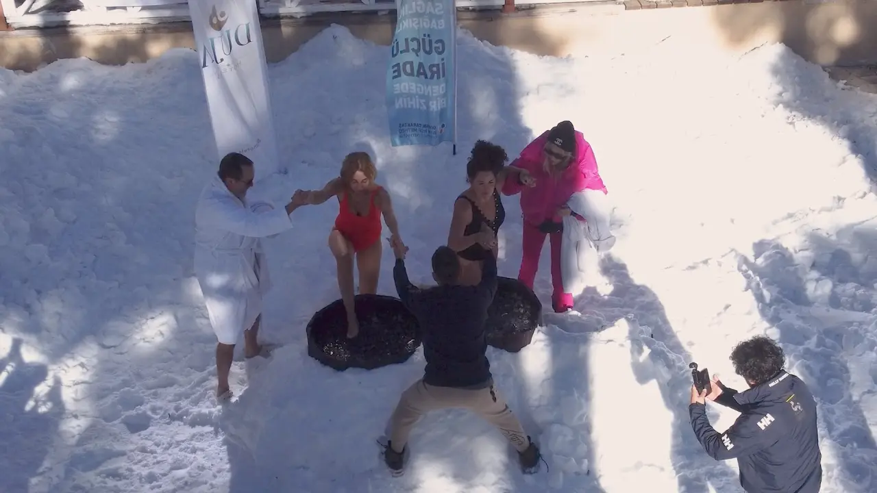 Uygulamalı Wim Hof Metodu seanslarını yöneten eğitmen Doruk Taraktaş, nefesin gücü ve soğukla çalışmanın dönüştürücü etkisini katılımcılarla paylaştıklarını söyledi. Taraktaş, iki günlük hazırlık sürecinin ardından katılımcıların kristal karlar üzerinde özel olarak hazırlanmış buz dolu suya girerek hem fiziksel hem de zihinsel sınırlarını deneyimlediklerini dile getirdi.