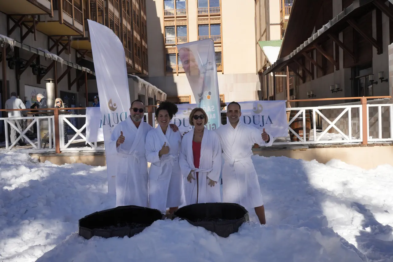 Kars’ın Sarıkamış ilçesinde, kristal karı, sarıçam ormanları arasındaki uzun pistleri ve doğal güzellikleriyle kış turizminin önemli merkezleri arasında yer alan 2 bin 634 rakımlı Sarıkamış Kayak Merkezi’nde tatilciler, kristal karlar üzerinde buz banyosu yaparak sıra dışı bir deneyim yaşadı.