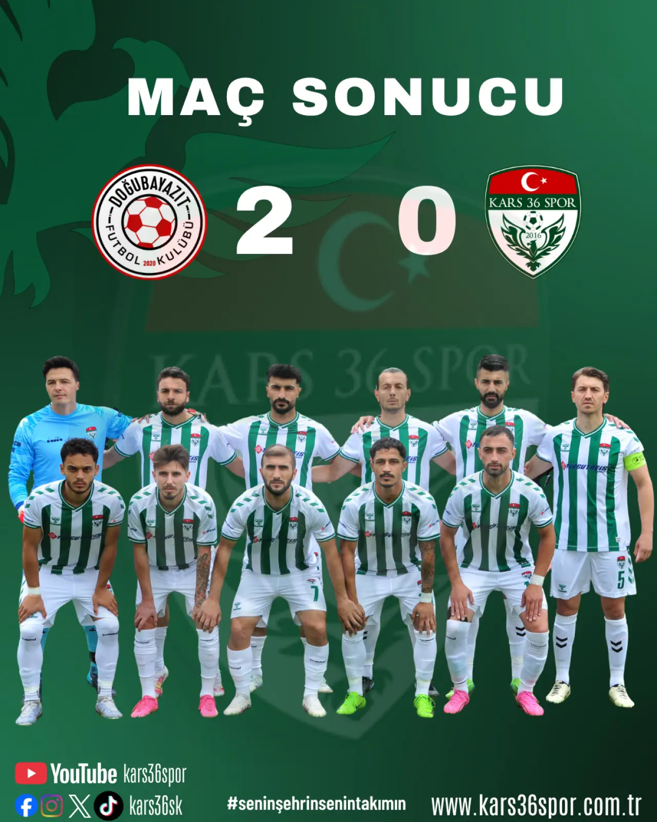 Kars 36 Spor, sezonun ilk 3 maçında başarılı bir performans sergiledikten sonra Doğubayazıt FK'ya deplasmanda 2-0 yenilerek ilk mağlubiyetini aldı.