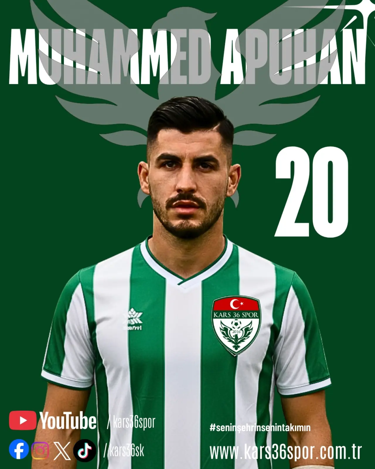 Kars 36 Spor Kulübü, kadroyu güçlendirme çalışmaları kapsamında yeni bir transfere imza attıklarını duyurdu. Yapılan resmî açıklamada, Muhammed Apuhan’ın sezonun kalan bölümünde Kars 36 Spor forması giyeceği bildirildi.