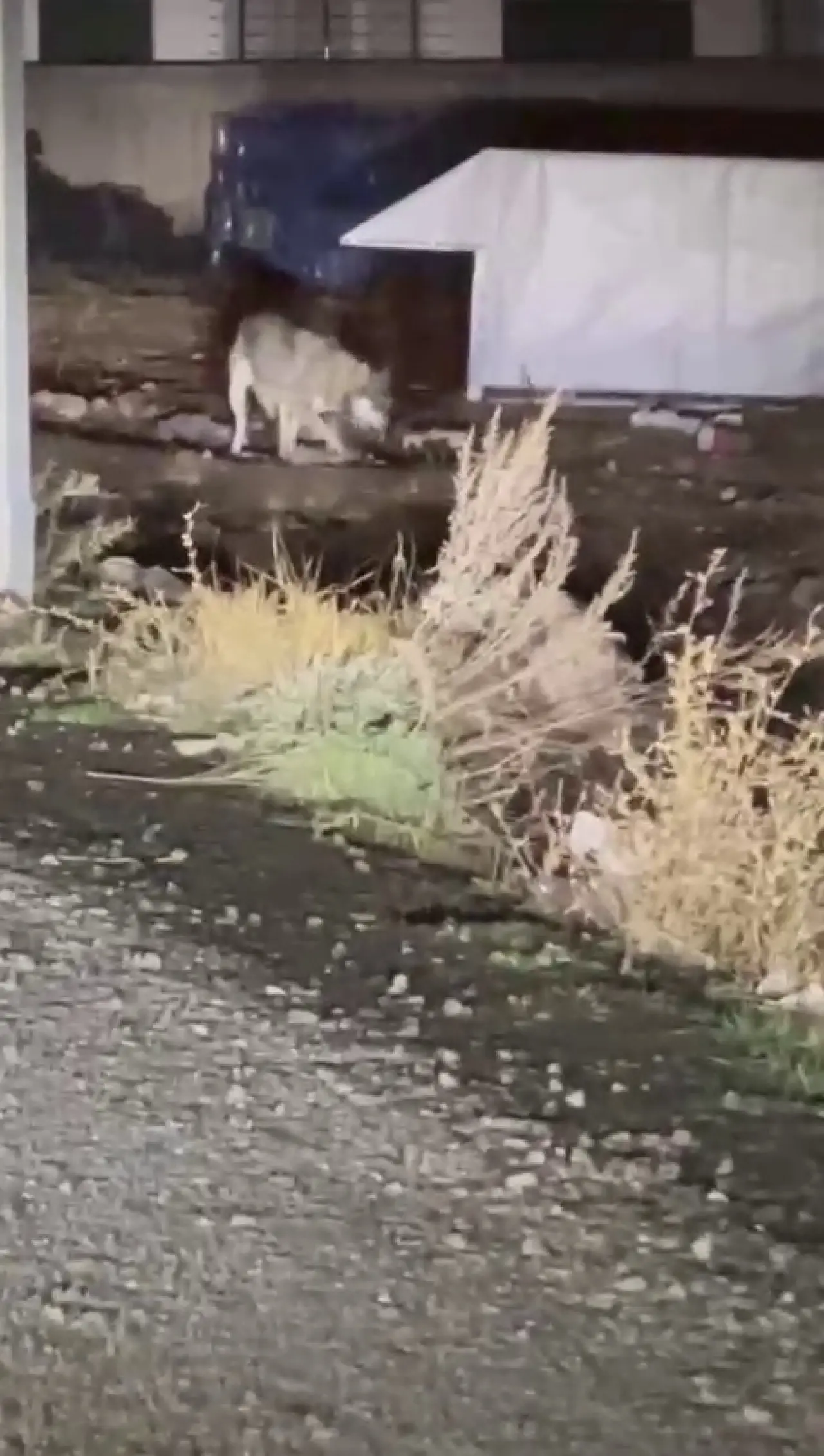 Olay, gece saatlerinde meydana geldi. Görüntülerde, hayvanın binaların arasından geçtiği, çöplerde yemek arayan Kurt bir süre sonra bölgeden uzaklaştığı görüldü.